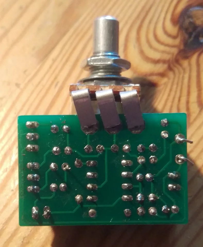 Nun muss ich dazu sagen, dass ich von Elektronik so gut wie keine Ahnung habe. Ich habe mich also mit dem 'Löten nach Zahlen' versucht und vom Aussehen ist es zumindest gelungen. Allerdings als ich den Preamp dann eingebaut hatte passiert, was ich fast erwartet hatte - nämlich nichts. D.H. doch, nämlich die Diode ist heiß geworden, aber Töne kamen keine. Beim Löten habe ich versehentlich die 2M2 links unten verkehr herum eingelöten, aber bei einem Widerstand sollte das doch keine Rolle spielen. Den 1n5 Kondensator hatte ich durch einen 680p ersetzt, weil der PU ca 3,5 k Widerstand hat, parallel gemessen.