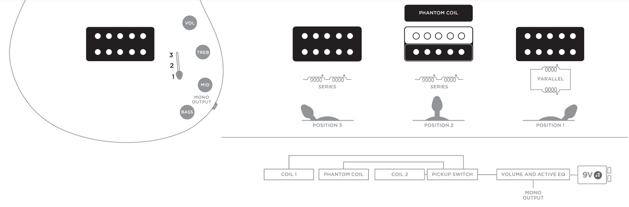 Scheint tatsächlich so zu sein, dass die Pickups der SBMM-Bässe seriell verdrahtet sind ...
