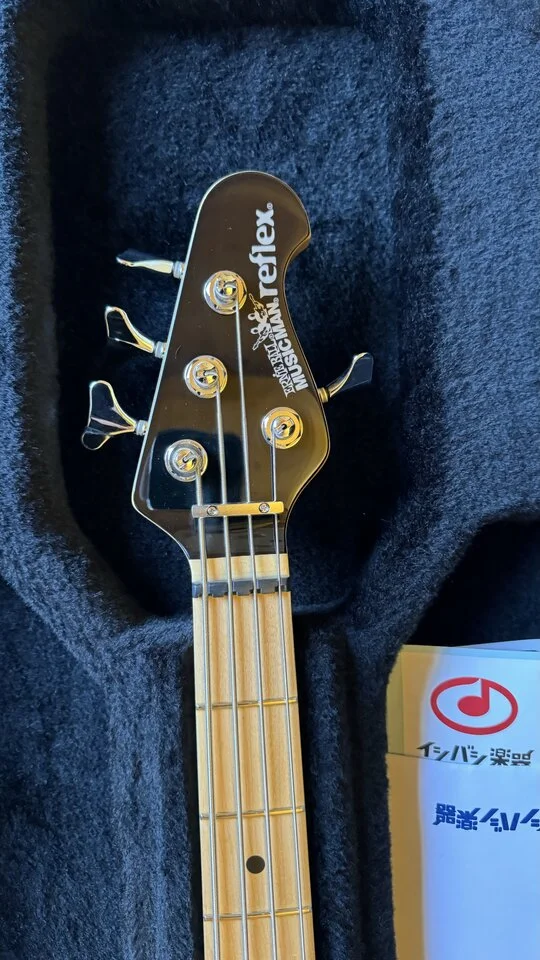 Mängel: Der Vorbesitzer hat die compensated nut gegen einen normal Sattel ausgetauscht, und ist eimal beim Hals einstellen wohl mit dem Schraubenzieher abgerutscht (der tone block unter dem trossrod wheel hat Einkerbungen), ganz leichte (nur im Gegenlicht sichtbare) Dings auf Tore- und Rücksitze, und noch eine kleine Blessur am Headstock. Bass käme im OHSC.