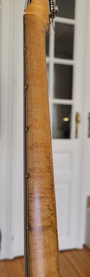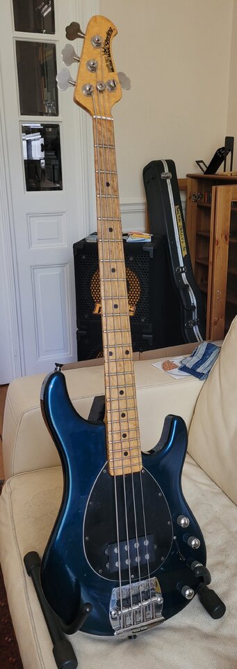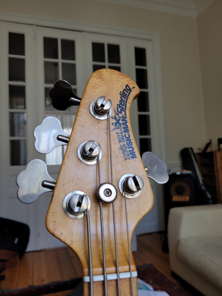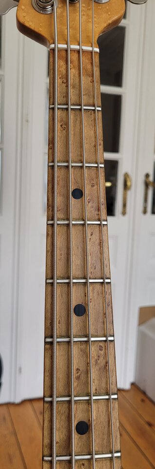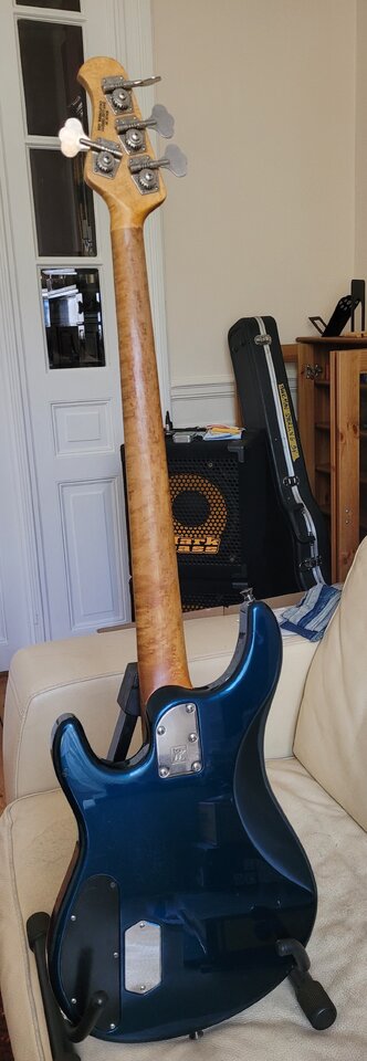 Neuzugang bei mir - EBMM Sterling Mai 1994. Hals spielt sich super (schlank wie frühe Streamer oder Jazzbass), ist weder geröstet noch sonstwas; nur unbehandelt - ich hab ihn erst mal mit Dunlop-Öl geputzt, dann mit Warwick Wachs gepflegt und poliert.