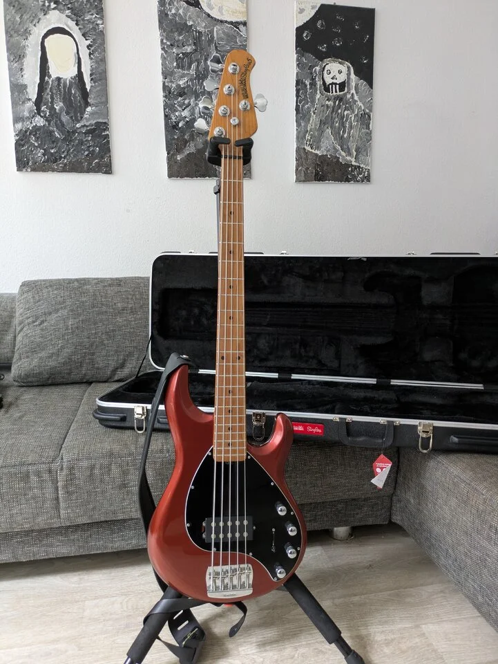 Hier, ich zitiere mich mal selbst, hat ggf. noch jemand Interesse an einem einzigartigen Shorty?Hey, kurze Frage... vielleicht hat jemand Interesse an einem "Sterling by" Stingray Shortscale in einzigartiger Kombination?Das wäre dann letztendlich Daphne Blue Body mit einem Roasted Maple Neck mit Palisander-Griffbrett.