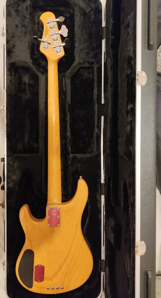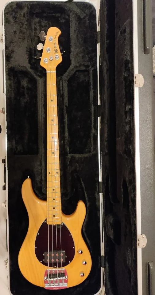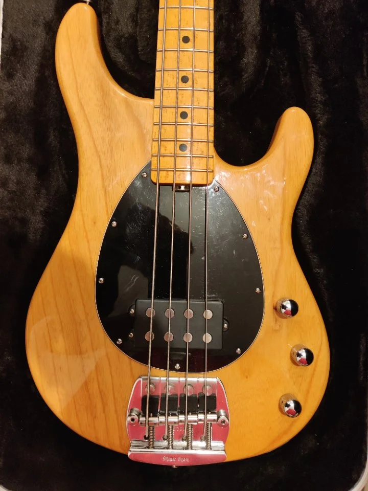 One Piece Slab Body (Ich kann keine Schnitte finden, auch von der Maserung her ein reiner One Piece Body). Kein Wahlschalter für Optionen vom Pickup, einfach der reine 2 Band Preamp wie im Stingray Classic, angelehnt an den originalen StingRay Preamp. Dafür ein Keramik Magnet und statt Parallel eben Sterling mäßig Seriell.