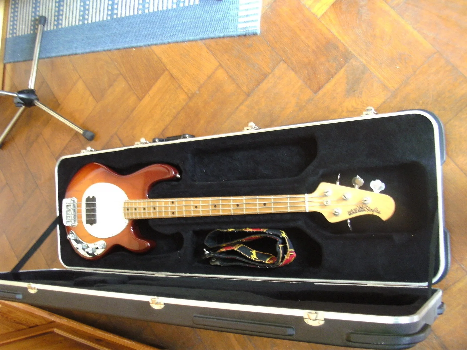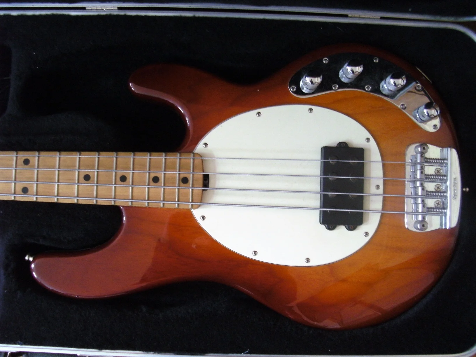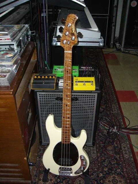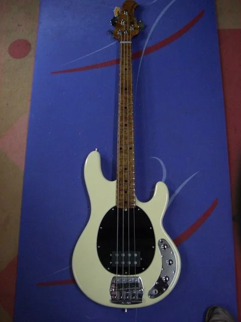 Es handelt sich dabei um einen Stingray 4, Baujahr 2005 mit Maple-Fingerboard und Dreiband-EQ. Hals und F-Board sind unlackiert, wesshalb das Fingerboard auch schon etwas Funk ausstrahlt. Das ist aber üüüüüberhaupt kein Problem.