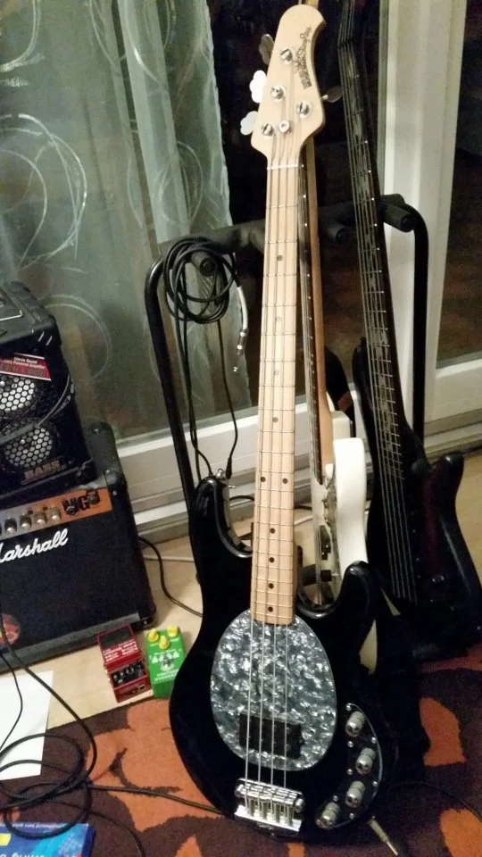 Der PU, dessen Position und die aktive Klangregelung machen das Wesentliche aus. Die Brücke ist eigentlich ein nur bässerer Blechwinkel mit etwas fetteren Reitern, hat aber durch die beiden fetten Bolzen einen intensiveren Kontakt zum Korpus.