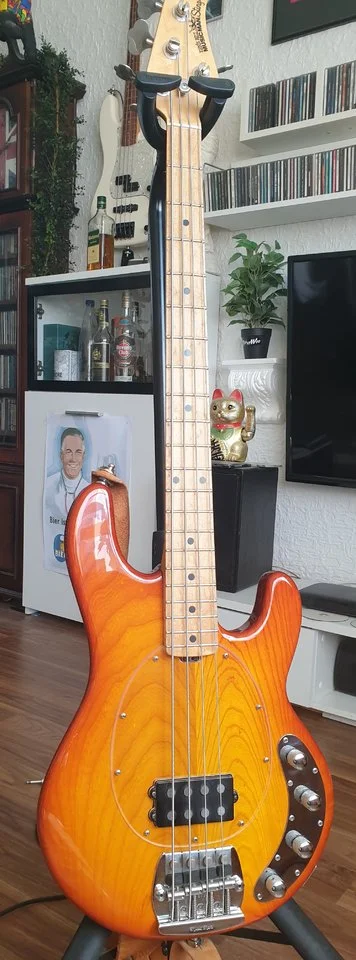 Sieht toll aus.... kannst Du mir bitte sagen, wo Du das Pickguard gekauft hast? ... .ich habe auch einen Honeyburst-Stingray, da käme die Maserung bei einer Clear-Scratchplate bestimmt gut raus ...