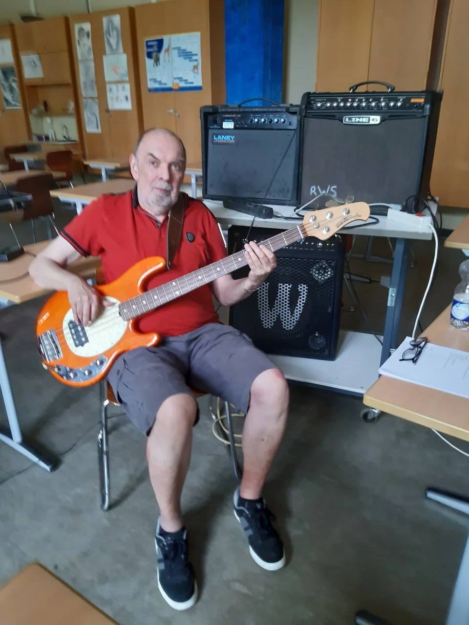 Seit dem 5. Juni proben wir ja wieder. Ich hatte womöglich schon erzählt, daß der Schlagzeuger Hausmeister an einer Schule ist und wir in einem Musiksaal kostenlos proben dürfen. Dort steht auch Verstärkerzeuch rum, auch ein Powermixer mit Boxen. Es ist irgendwie provisorisch und doch nicht unbedingt das Schlechteste was ich in den letzten 45 Jahren so alles erlebt habe. Vorige Woche hatte ich meinen Tokai Jazz Sound mit Fender Pups dabei und aus diesem Warwick Sweet 15 oder wie der heißt keinen vernünftigen Ton rausgebracht. Gestern den StingRay eingesteckt und voilà - so will ich das haben.