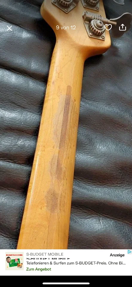 Alles soweit tiptop in Schuss, und funktioniert. Hals gehört abgeschliffen oder neu lackiert, aber dann wunderbar. Was von Beginn an kurios war, ist die Farbe.