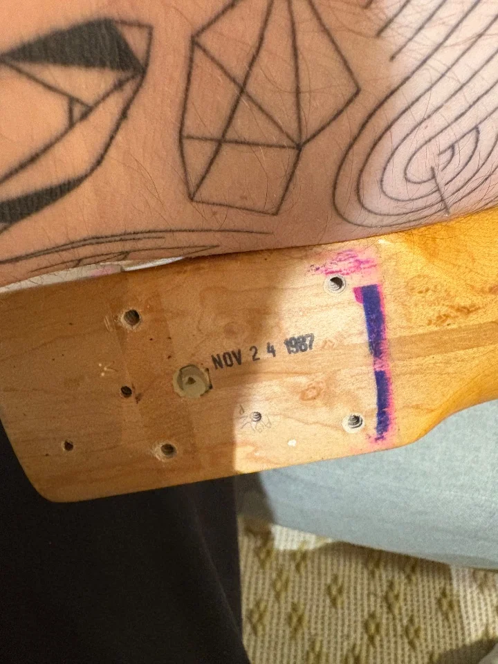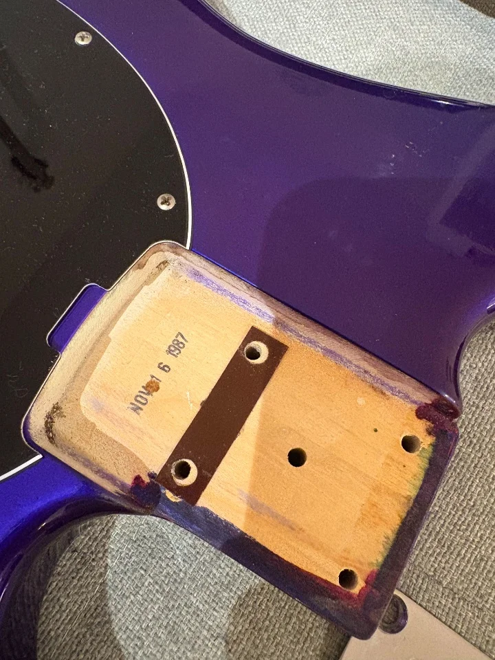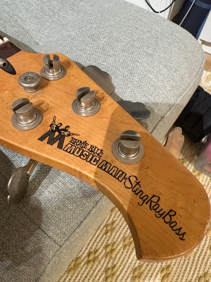 Ich hab bereits versucht über den Musicman Support und die Seriennummer etwas herauszufinden, aber leider gibt es keine detaillierteren Aufzeichnungen mehr dazu. Nur, dass der Bass Ende 1987 gebaut wurde und das “Special” wohl auf eine Sonderbestellung hindeutet (laut Musicman). Die Farbe scheint auf jeden Fall sauber gemacht, aber ich bin absolut kein Experte auf dem Gebiet. Es ist mir auch egal, ob sie orginal ist oder nicht, aber ich würde es gerne wissen, weil ich sonst ggf. in Erwägung ziehe, ihn auf Originalfarbe zurück lackieren zu lassen.
