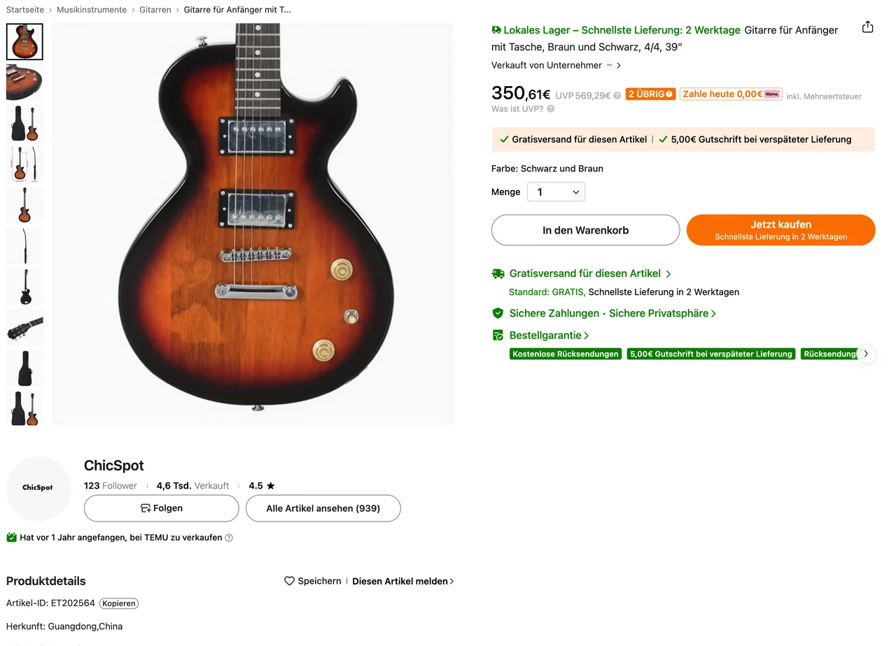 Moinsen, hat jemand hier schon mal ein Musikinstrument bei Temu bestellt? Ich meine jetzt nicht die Nasenflöte für 50 cent, sondern Bass, Gitarre etc.