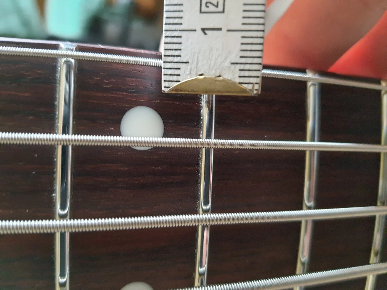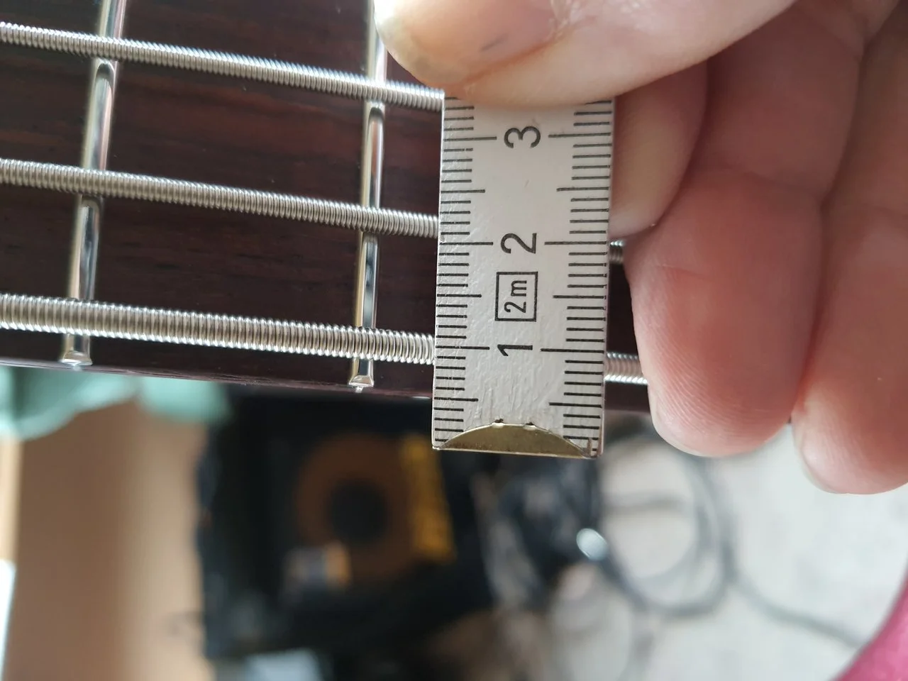 Die H-Saite ist z.B. gute 5 mm vom Halsrand entfernt.