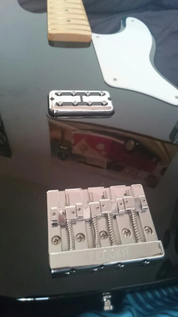 Squier Cabronita als Retoure, original schon sehr cool! Braucht ein kleines Setup, die E-Saite von Werk ist etwas tot aber insgesamt klingt er schön räudig, gefällt mir. Trotzdem bleibt es dabei, da kommt ein Pickup von Christoph Dolf rein!