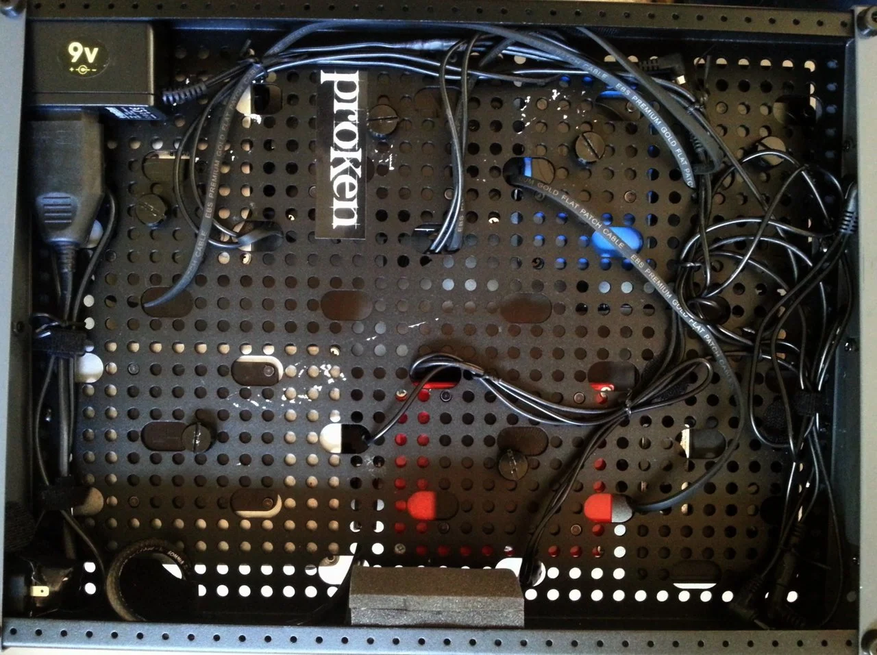 Dann steht ja der Schraubenkopf auf der glatten Fläche über, wo eigentlich das Klettband aufgeklebt werden soll, welches dann vermutlich nicht mehr komplett eben aufgeklebt werden kann, was vermutlich zur Folge hat, dass das Klettband an diesen drei Stellen nicht richtig klebt, und/oder das Effektgerät an dieser Stelle nicht schon satt auf das Klett aufgedrückt werden kann...