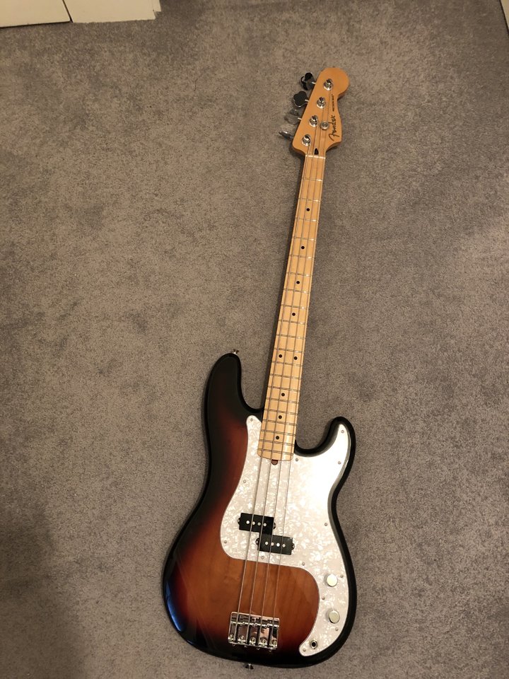 Der erste Eindruck ist wirklich super! Die Verarbeitung ist sehr gut, die Bundenden sind schön angenehm und die Lackierung ebenfalls einwandfrei. Der Korpus besteht wohl aus drei Teilen, wobei man die Übergänge praktisch nicht sieht. Der Klang überzeugt mich sehr, direkt und aggressiv, klingt wirklich nach Preci, wobei ich da jetzt nicht der wirkliche Preci-Experte bin. Ans Handling muss ich mich erst noch ganz gewöhnen, da ich sonst eher Jazzies spiele. Meine anfänglichen Sorgen, der Hals könnte mir etwas zu dick sein, bin ich aber definitiv los! Der satinierte Hals ist sehr angenehm zu spielen. Das Sunburst finde ich, obwohl mir die letzten Jahre Sunburst absolut nicht gefallen hat, richtig gelungen.