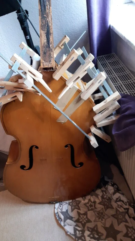 Mein erster Kontrabass, ein alter Böhme, war auch so eine Ruine. Der Aufwand war groß und hat sich auf jeden Fall gelohnt.bin da sehr skeptisch. So ein irrer Aufwand.