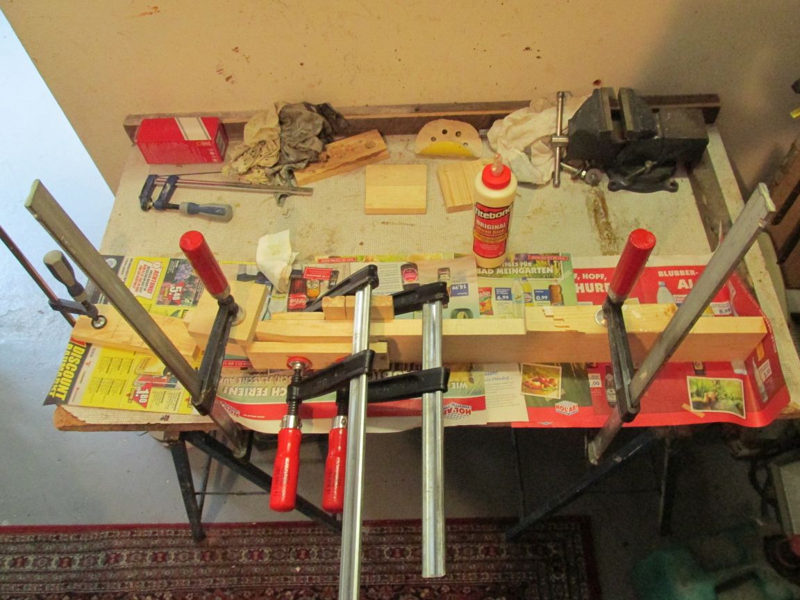 Lektion 1: Die Leimkanten mit 'ner Handkreissäge gerade zu sägen klappt nicht so besonders gut (trotz Führungsschiene).