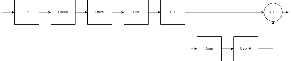 So richtig will ich auf keinen der Blöcke verzichten. Der erste Kompressor vor dem B-Pfad war ein kleiner Gamechanger und der EQ hinter der IR ist eeeigentlich auch nötig. Zumindest mag ich die 12db/Otkave Flankensteilheit beim Low Cut des EQ-Blocks mehr als die 6db im Low Cut des IR-Blocks.