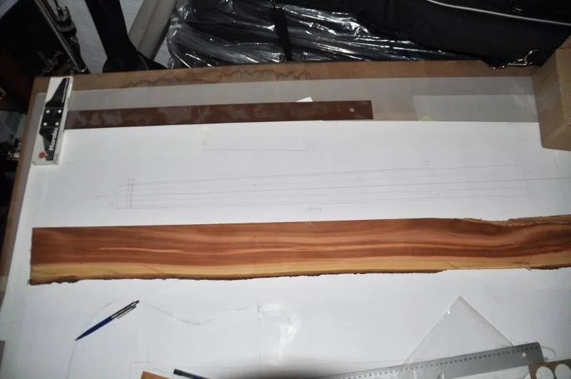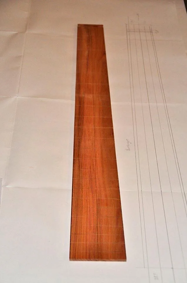 Griffbrett aus deutscher Pflaume (war ein sehr sehr alter Baum, in den wohl der Blitz eingeschlagen hat[?])