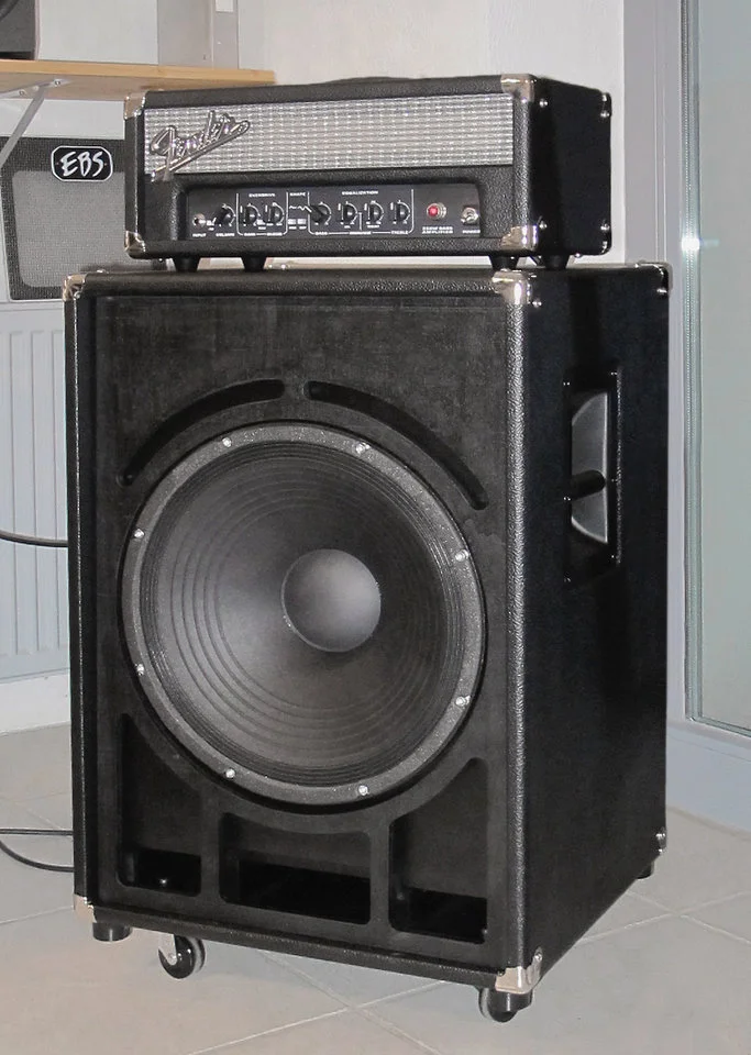 Danke! Die Box ist ´ne 1x15 nach leicht verändertem Plan der TL606 mit Eminence Kappa Pro-15A; der Amp ist nur ein modifizierter Fender Rumble 350 im selbstgebauten Case.@Tiefbau : dieses Stack gefällt mir sehr gut. Welche Box und welcher Amp ist das genau? Ist das ein 18-Zoll-Lautsprecher?