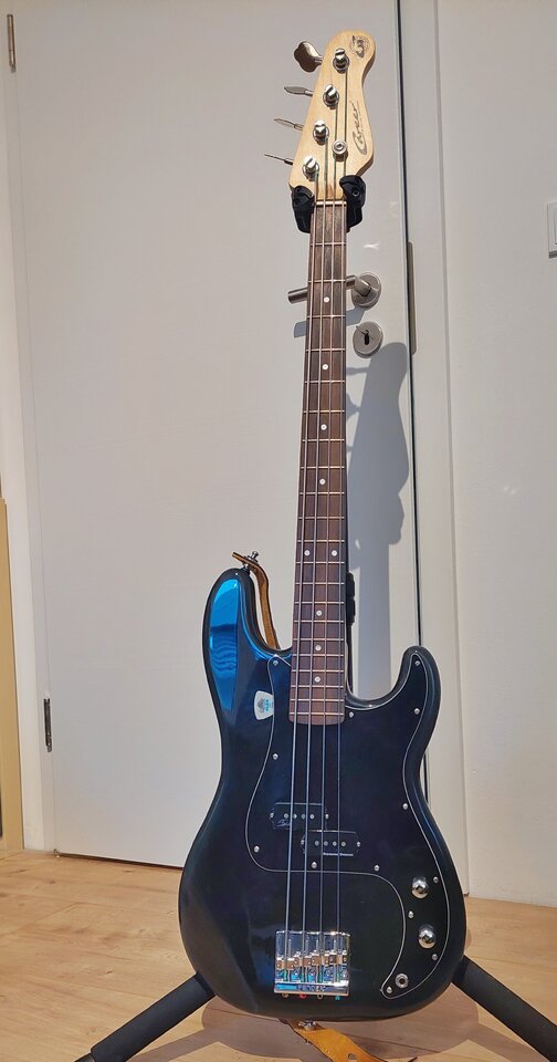 Da ich hierfür das Plektrum-Spiel passender als Finger finde und ich die neuen Elixirs auf meinem Hauptbass nicht durchdengeln wollte, habe ich mit einem gepimpten Billo-Preci mit