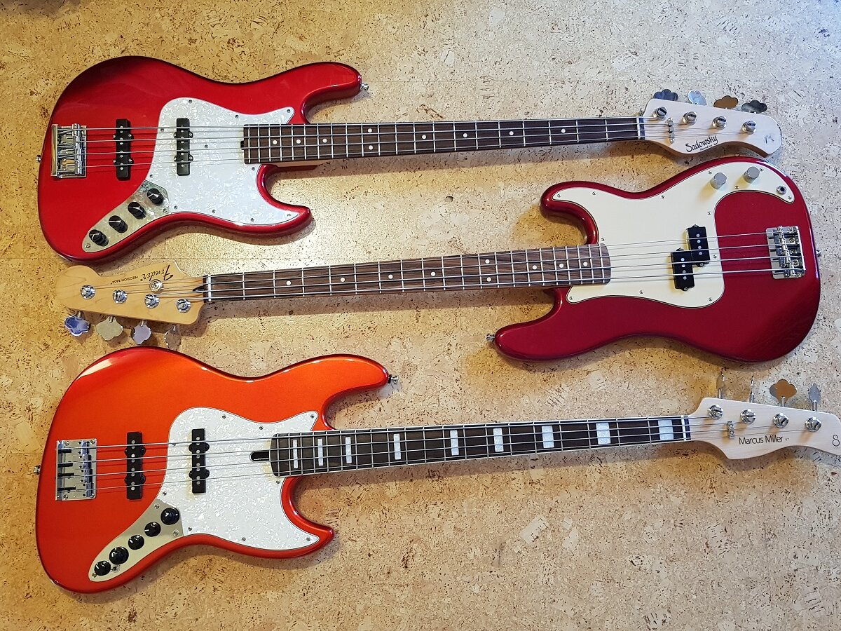 Verwandschaften im Sound, bei allem, was nach Lehrmeinung der Schulmedizin so unterschiedlich ist wie kann? Pickup-Position? Ahorn gg. Rosewood Griffbrett? Sumpfeschse gegen??(Linde/Mahagony/Erle??) Womöglich ist der Ray auch noch aktiv? Rot vs. Grün? Entscheided am Ender ausschliesslich der Durchmesser der Polepieces????????Diesem Pärchen sieht man die Verwandtschaft nicht auf den ersten Blick an,