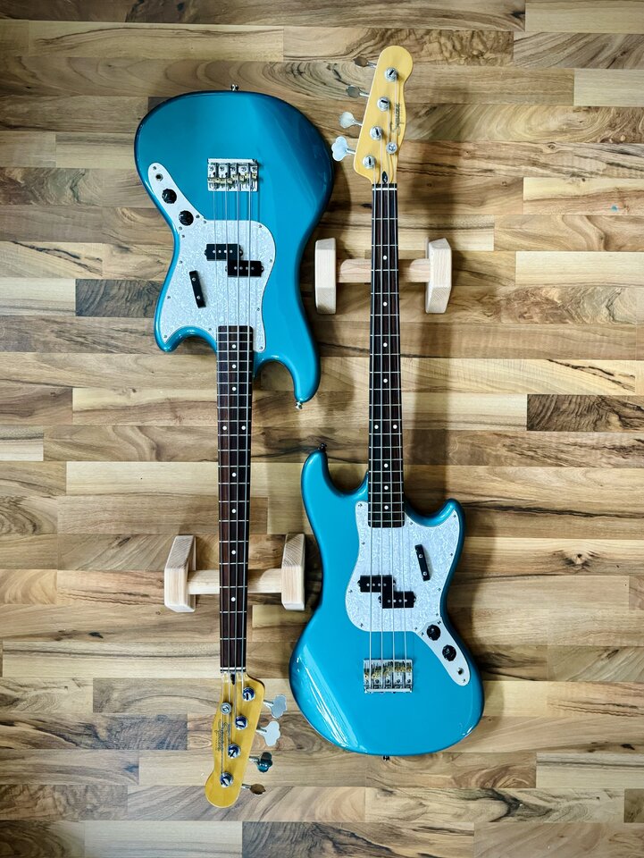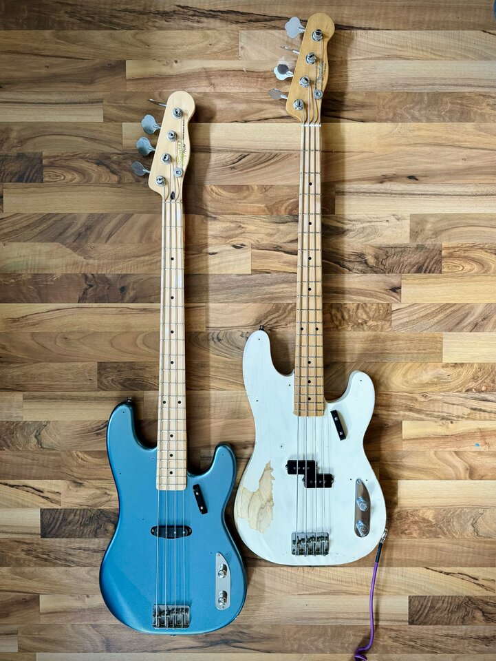 DeGier: Sehr flacher, breiter Hals, eingespielte La Bella Low Tensions, sehr thumpy und soulig.