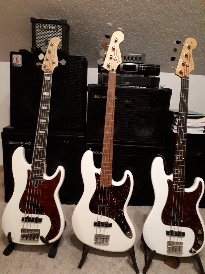 ...und ich habe immer geglaubt, fünf Jazz Bässe sind schon übertrieben viel, braucht man doch echt nicht alle.Ich sage mit derzeit einem Dutzend Precis besser nix
