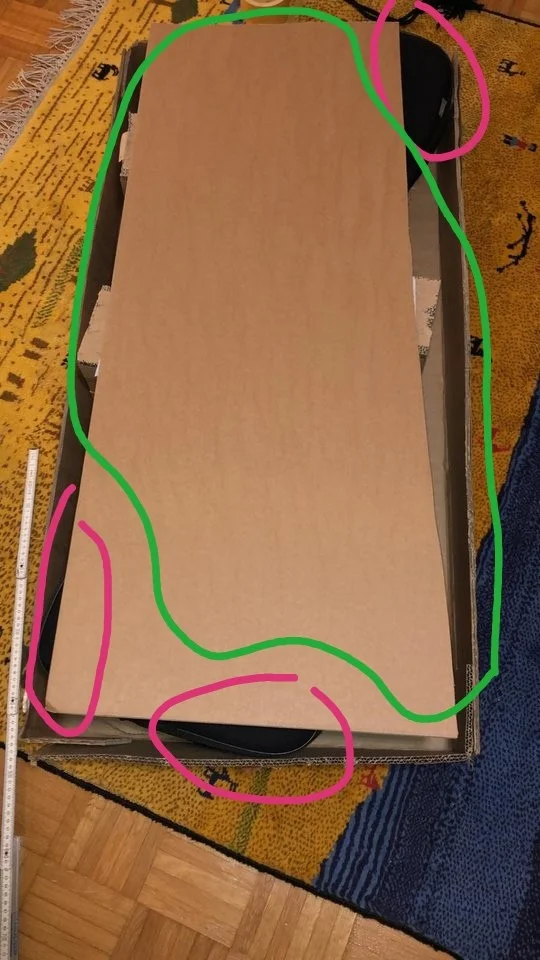 Die Spacer dazwischen haben von vorne und hinten Palettenpappe als Fundament bekommen. Das Zeug ist dermaßen stabil. Da kannst du mit dem Auto drüber fahren.