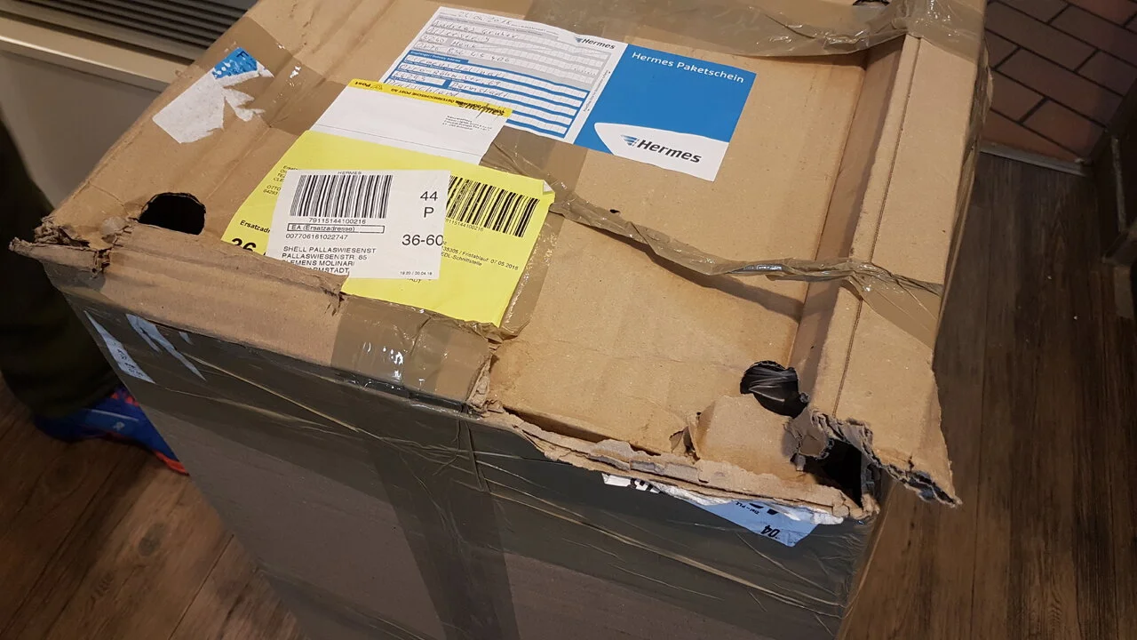 Muss ja nicht gleich Hermes sein, denn mit denen geht hier gar nichts. Das hier war eine Bassbox, hat knapp drei Wochen von Wien hierher gebraucht, wurde dann in diesem Zustand zur Abholung einer 8 km entfernten Tankstelle angeliefert - nach drei angeblichen Zustellversuchen.