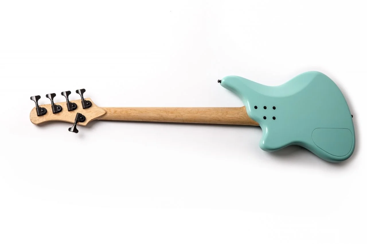Korpus. Einher gehen zur bekannten Fender Jaguar Form einige Modifikationen, welche der Form einerseits ein moderneres Erscheinungsbild geben aber auch das gesamte Instrument ausgewogener am Körper hängen lassen. Hals und Bridge sind "nach hinten" eingezogen, damit verbunden eine Vergrößerung des unteren Cutaways, sodass auch die höheren Lagen weiterhin problemlos erreicht werden können. Zudem ist des obere Horn etwas verlängert um einer möglichen Kopflastigkeit entgegen zu wirken. Am auffälligsten dürfte aber wohl die Umgestaltung des Übergangs zum Hals ausfallen - der antik anmutende eckige Klotz wird hier durch eine geschwungene Linienführung ersetzt, welche sich im Halsprofil wiederfindet. Die Korpustaille zeigt sich etwas geschmälert und die Außenkurve im Bereich der Armauflage nach vorne gezogen um das Offset-Erscheinungsbild zu verstärken. Bei Interesse liefere ich gerne ein Vergleichsbild beider Formen nach.