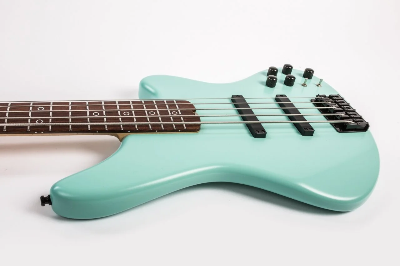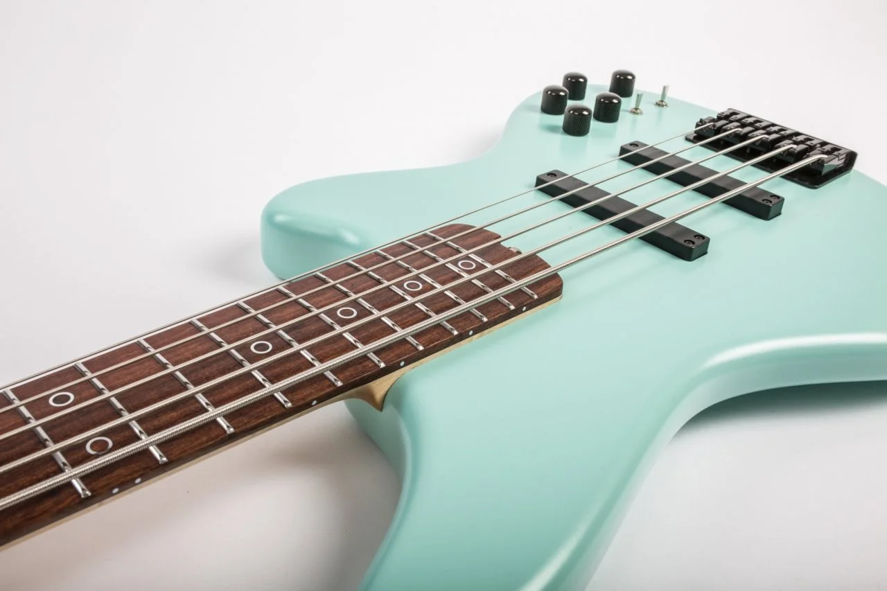 Auf einen Sattel im klassischen Sinne wurde verzichtet. Stattdessen kommt ein Niederhalter mit Saitenführung zum Einsatz, welcher die Saiten gleichzeitig in ihrer Position fixiert und mit definierter Kraft auf den Nullbund drückt. Durch diese Bauweise ist ein Schnarren der Saiten am Nullbund/Sattel, wie man es gelegentlich bei der A-Saite bei Bässen mit zurückversetzter Kopfplatte und ohne Saitenniederhalter erlebt, ausgeschlossen.