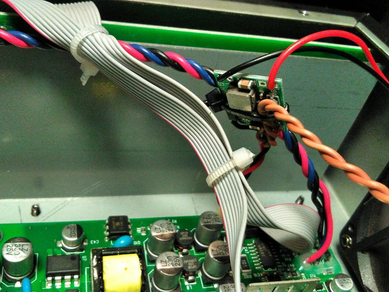 Du siehst also nicht die kleine Platine, die auf dem Bild noch in der Luft hängt? Und den Temp.-Fühler an einem der FETS der Halbbrücke? Soll ich dir farbige Kreise rummachen? (Die Bilder sind aus unserem privaten Chat-Verlauf, ich kenne die Innereien selbst nicht)Ich sehe nixht was dort modifiziert wurde....