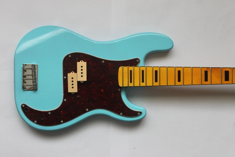 Spraydose gemacht. Dünne Schicht aus 25-30 cm Entfernung, trocknen lassen, dann anschleifen, nächste Schicht... Auf auspolieren und Klarlack verzichte ich diesmal. Ergibt einen zurückhaltenden, leichten Glanz und sieht damit aus, als ob der Body schon etwas älter sei. Ist sehr schön geworden.
