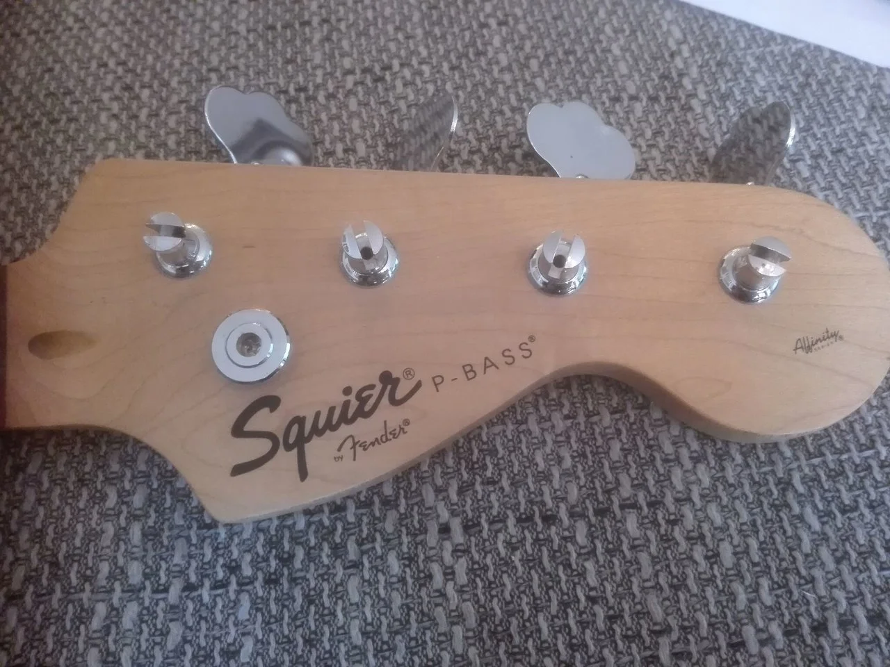 Der erste Eindruck ist schonmal mit leichten Abstrichen positiv. Sehr schöner Bass, guter Zustand, wurde aber definitiv gespielt. Zwei kleine Dongs auf der Rückseite die aber nicht weiter stören und das Pickguard hat's dank dreier Risse auch hinter sich - macht gar nichts, das wollte ich von vornherein tauschen. Das deutet schonmal darauf hin, dass der Bass schon ein paar Jährchen auf dem Buckel hat. Die Bünde sind ordentlich abgerichtet, das Griffbrett traumhaft schön und in ziemlich gutem Zustand... nirgends abgegrabbelt.
