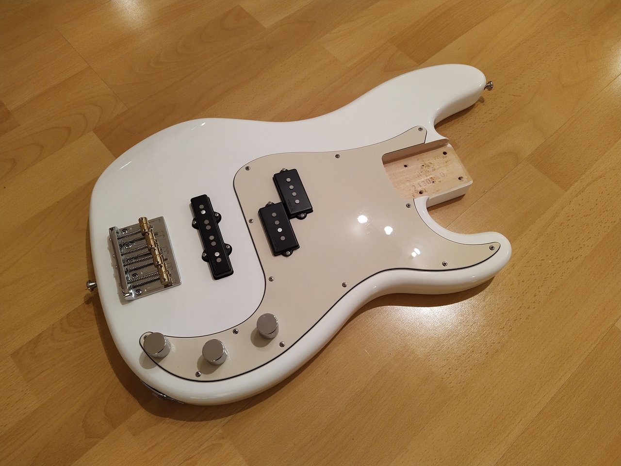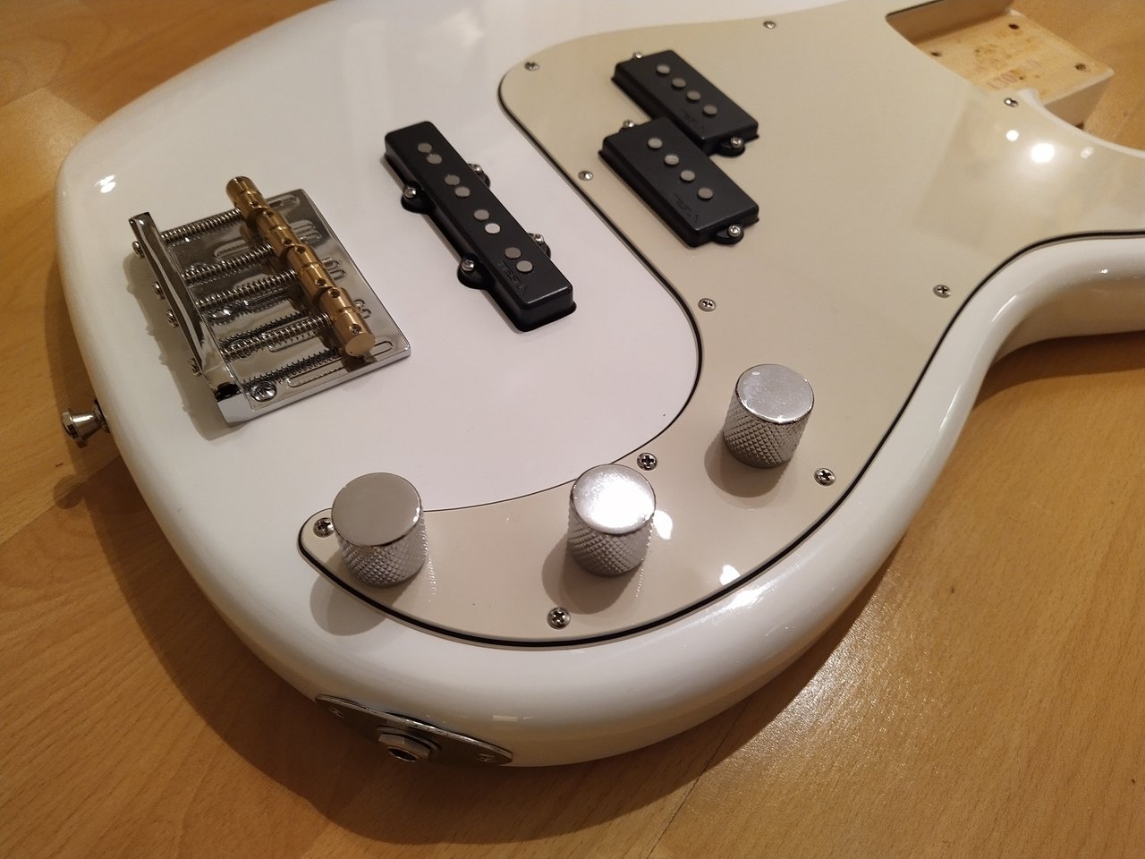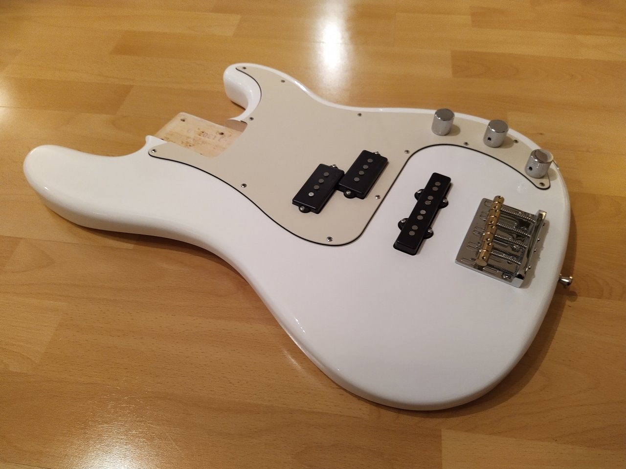 Zum Verkauf steht dieser schöne voll bestückte PJ Bass Body, den ich aus einzelnen Teilen zusammengesetzt habe. Nun sind andere Instrumente da bzw. der zugehörige Hals wurde anderweitig verbaut, und der Body darf weiterziehen.