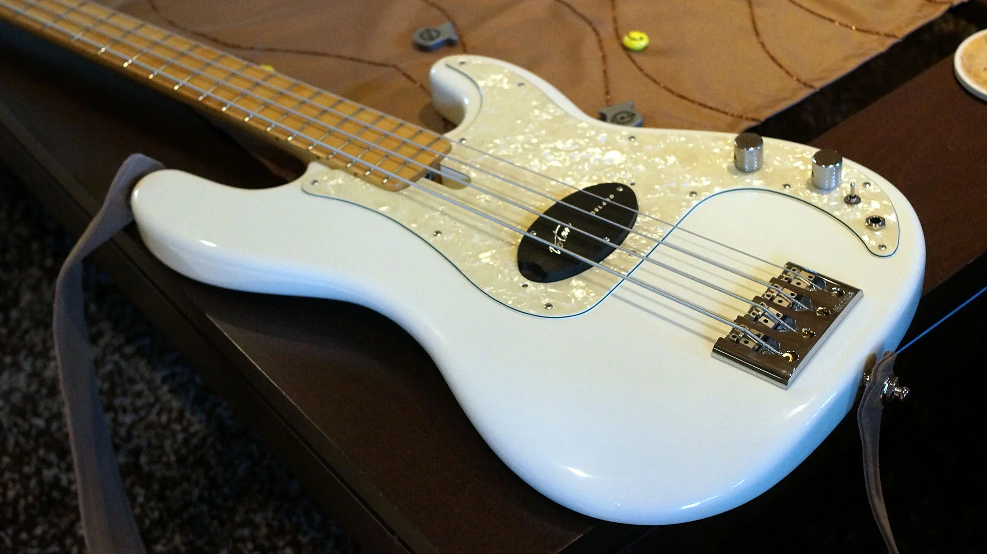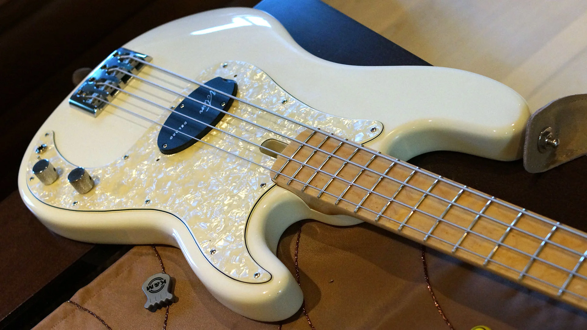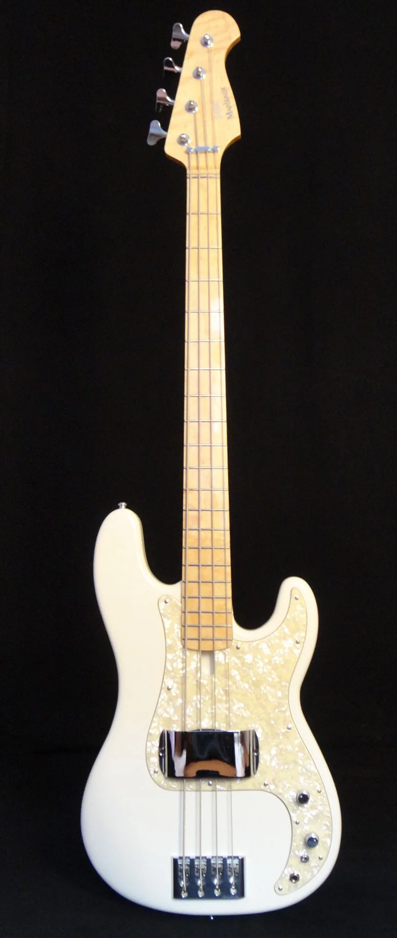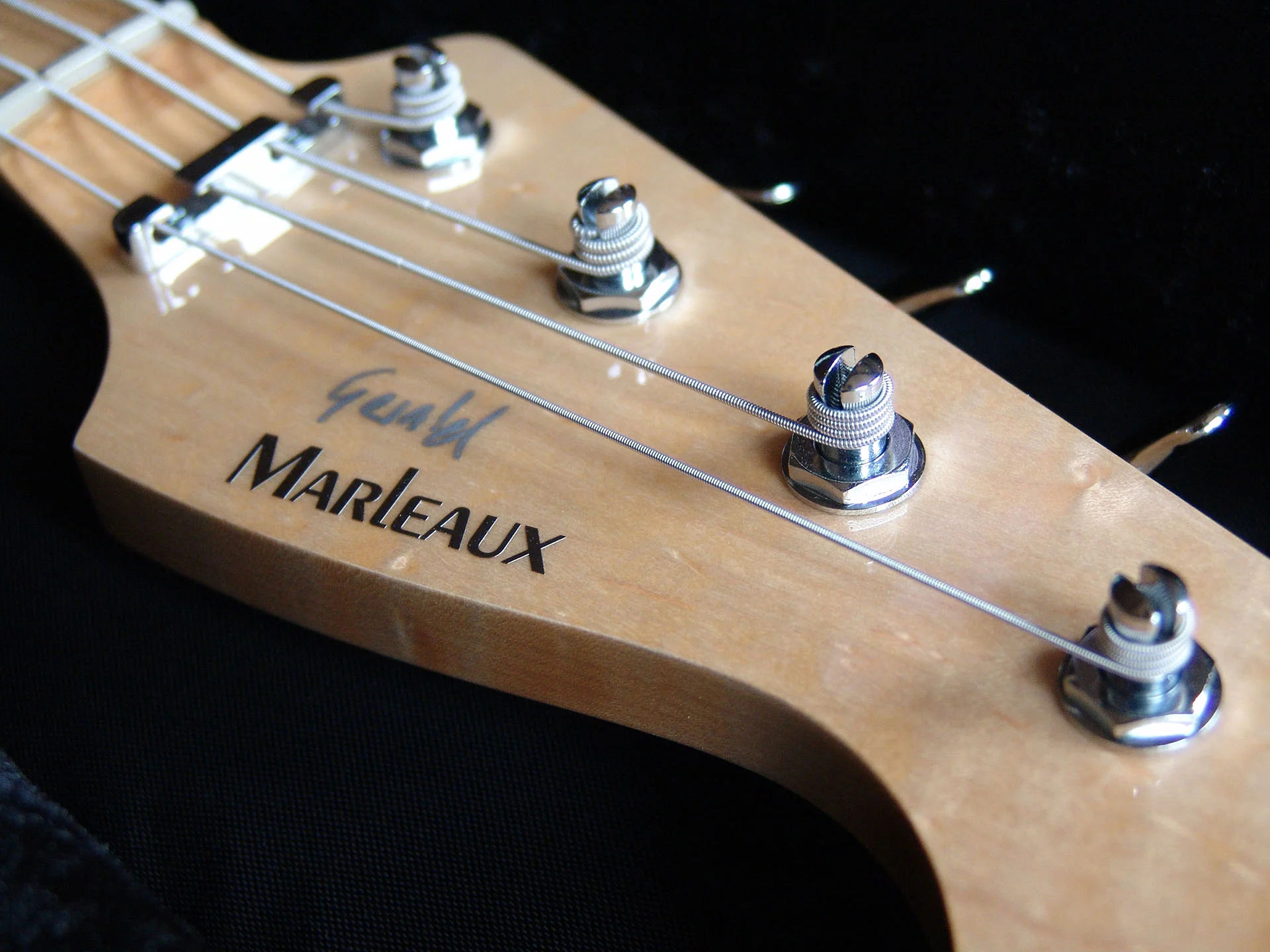 Als Grundkonstruktion diente der Marleaux Rootsbass mit leichtem Erlebody, cremefarbener Lackierung, einem leicht gelb gebeizten Vogelaugenahornhals mit gleichem Griffbrett und gut verrundeten Konturen.