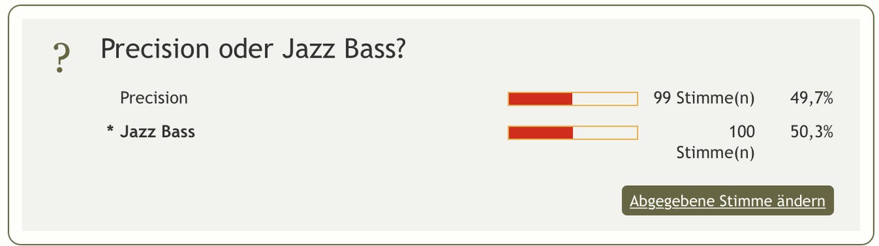 weinerliche Bullenscheiße?Ganz klar der Preci, warum? Nunja, der Preci ist was für richtige Kerle, der JazzBass eher was für ...