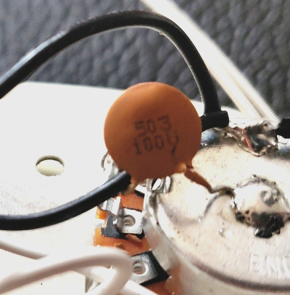 wenn ich nicht daneben liege, handelt es sich um einen 50nF Kondensator der 100V Spannung verknusen kannsooo, gerade mal nur die PU's gegen die Tonerider getauscht (beim Mex-Preci) und der der erste Test @home ist schonmal positiv, schöner offener Ton. lediglich die Schaumstoffunterlage könnte dicker sein, krieg die Pu's kaum hoch genug geschraubt.