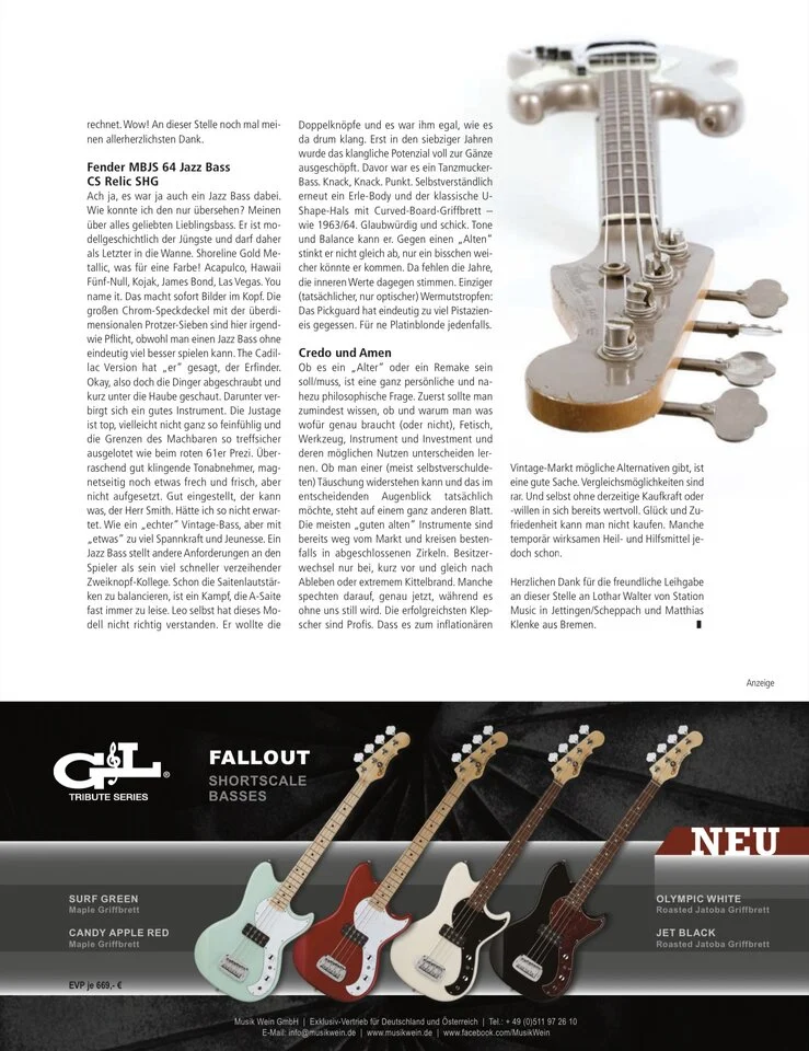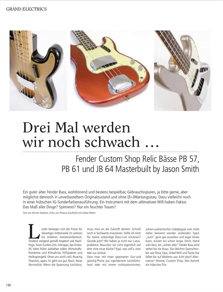 Irgendwie kann ich nicht nachvollziehen, warum man für einen Preci, das einfachste Basskonzept des Universums 3000 Steine oder mehr in einem Customshop versickern lässt. Einen Preci(clon) hat doch fast jeder Hersteller im Programm, d.h. die Konkurrenz und Auswahl ist riesig. Lassen wir mal Sammlerobjekte aussen vor. Für einen erstklassigen Player sollte man aber doch schon bei 1000 oder weniger fündig werden.