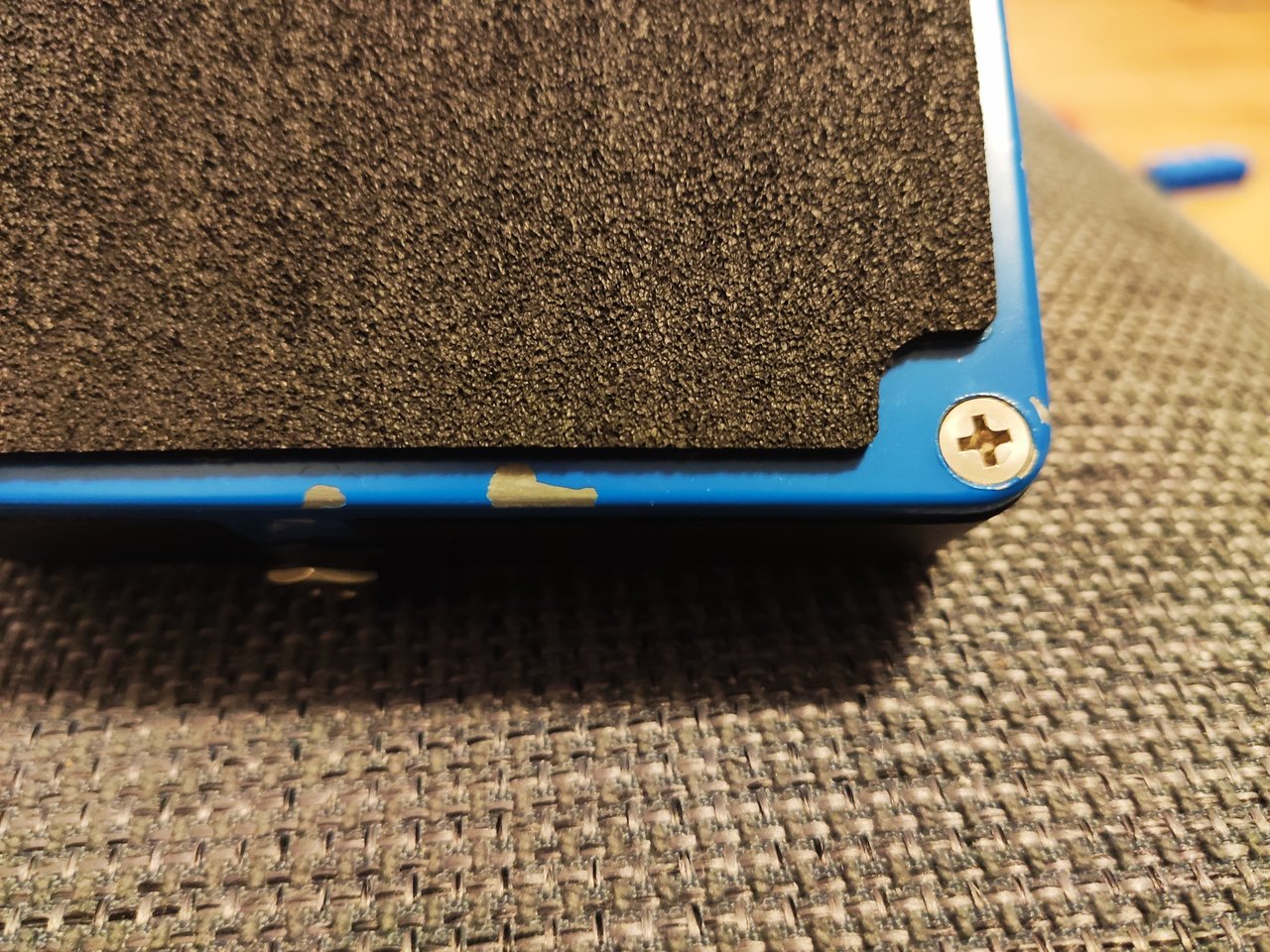 Eigentlich neuwertig (ist fast unbenutzt), er hat aber an einer Seite unten einen kleinen "Lackschaden".