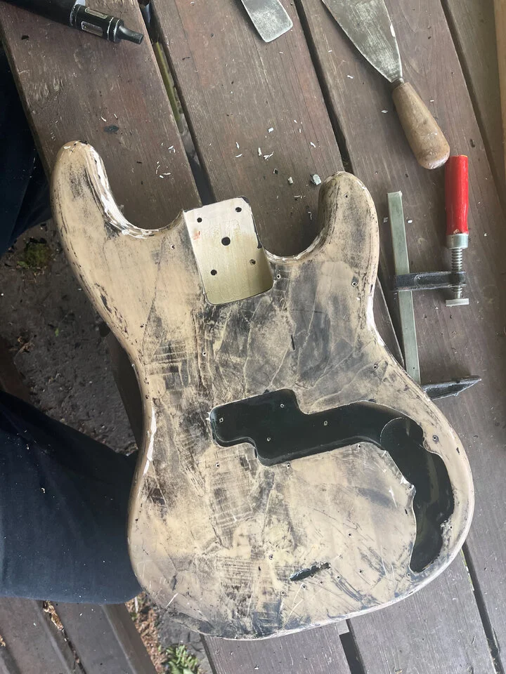 Mein Sommerprojekt, der Umbau eines H&B-Precis zu einem ORIGINAL KÄSEBASS ist gestartet. Ob er nachher wirklich so aussehen soll wie den einem Bild weiss ich noch nicht, das ist eher als grobe Visualisierung gedacht.