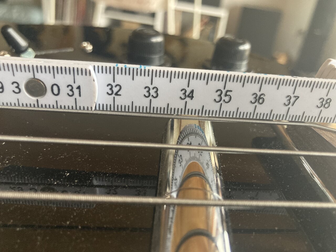 Kannst du bitte nochmal von 12ten Bund zu den Polepieces (!) messen? Die ganze DB ist so aufgebaut. Wenn wir die Daten alle vergleichbar haben wollen, wäre das toll...