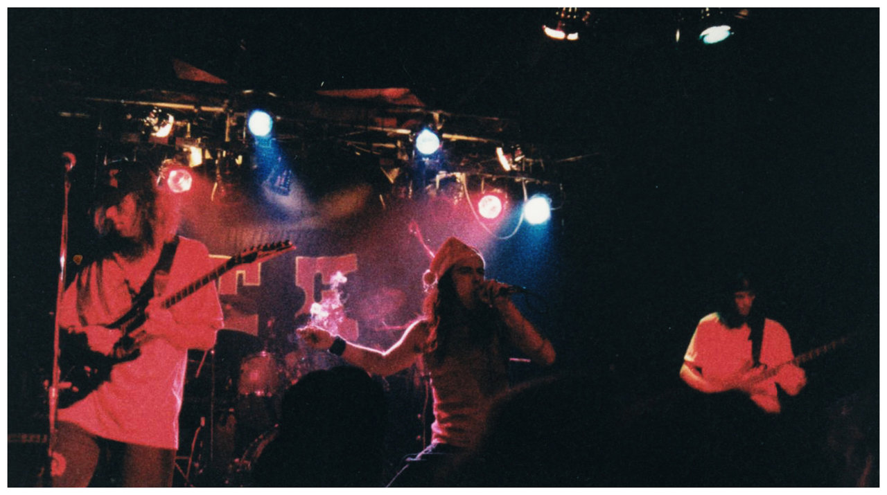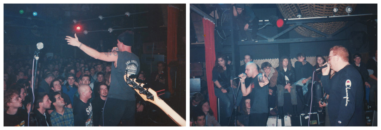 Jetz anhand der Fotos, kann ich mich an gesehene Konzerte von euch erinnern. Ein wenig half mir auch die Fahne hinter eurem Drummer auf die Sprünge...Ein paar Tage zuvor- Heimspiel - SO36 Weihnachten/1992…und endlich mal einer mit ner Kamera.