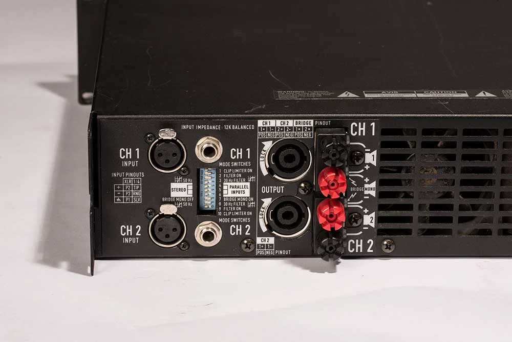 - Praxisgerechte und individuell konfigurierbare Features ergänzen die Ausstattung: ClipLimiter, Hochpaßfilter, sowie Betriebsarten Wahlschalter. Eingänge: XLR und Klinke. Ausgänge: SPEAKON- und Schraub-/ Klemm-Anschlüsse