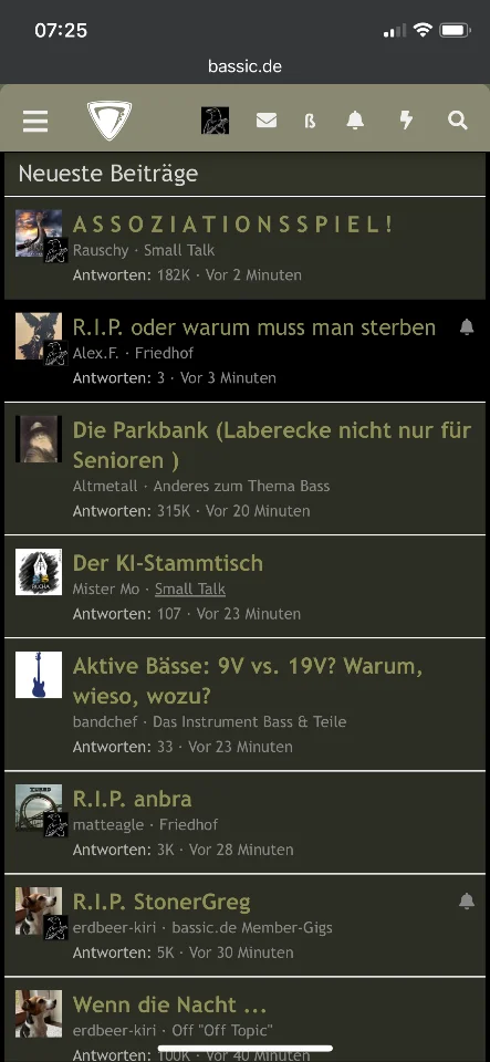 Und es werden sich an den Verstorbenen ihre Familien- und Forummitglieder, Freunde, Mitmusiker, Fans und vielleicht auch die hübsche Nachbarin erinnern und evtl. trauern. Die Hinterbliebenen suchen sich in Form des aktiven Erinnern an Verstorbenen Trost für sich und Hoffnung an die Ewigkeit. Als Zeichen der Liebe, Verbundenheit und Erinnerung an den Verstorbenen werden in hiesigen Forum namentliche Threads erstellt und mit Kerzen unaufhörlich hochgehalten. Das führt dazu, dass auf der Forenübersichtsseite oft nur noch solche Threads sichtbar sind – wodurch aktuelle Sachthemen und lebendige Diskussionen leider schnell untergehen. Das was für einige Betroffenen gewisse rituelle Bedeutung hat kann den anderen unheimlich bis abschreckend erscheinen. Was das ganze mit Seelen von Verstorbenen macht wissen wir noch lebende auch nicht. Vielleicht sind sie alle im glücklichen Bassisten-Himmel und haben endlich Den perfekten Bass, Die allerbeste Anlage gefunden und spielen Den unendlichen Groove vor Dem dankbarsten Publikum. Oder sind sie doch von unseren Ritualen nur genervt und keine Ruhe finden.