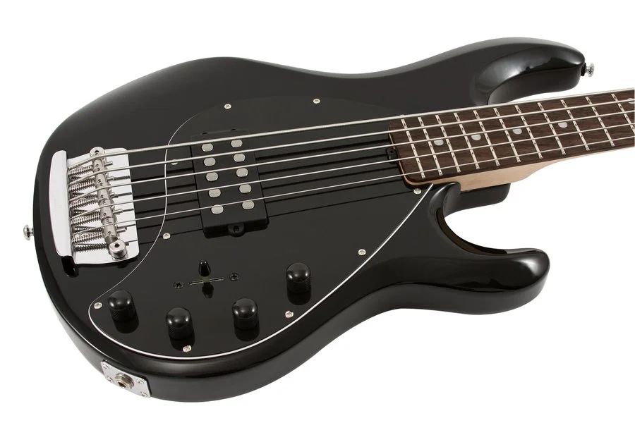 Die 21 Bünde sind sauberst und korrekt abgerichtet worden, ordentlich poliert und an den Griffbrettkanten sind keine überstehenden Bünde zu spüren. Hier gibt es von mir volle Punktzahl! Korpusseitig ist der Halsspannstab zu erreichen. Dieser liegt offen und kann mit Hilfe eines mitgeliefertem Hebel eingestellt werden, was auch sehr gut und leicht laufend passiert. Die Bridge ist von einer original MM-Bridge nur anhand des „Sterling“-Schriftzuges zu unterscheiden. Die Saitenlage lässt sich in Höhe und Intonation einstellen. Mir ist jedoch nicht klar, was die Möppel ober und unterhalb der Saitenreiter darstellen sollen. Vielleicht kann mir da jemand weiterhelfen? Die Saiten werden von hinten in die Bridge eingefädelt. Ein Möglichkeit diese durch den Korpus zu ziehen besteht nicht. Was ich nicht schlimm finde, da ich dazu sowieso die teureren Extralong-Saiten bräuchte. Werksseitig war die Saitenlage recht vernünftig eingestellt, lediglich die H-Saite war etwas arg niedrig und produzierte starke Nebengeräusche. Entsprechende Einstellungen ließen sich anhand der guten Erreichbarkeit aller benötigten Teile und des mitgelieferten Werkzeuges sehr gut und problemlos vornehmen. Die Korpusform ist analog eines Stingrays und lässt in Bezug auf Bequemlichkeit keinerlei Wünsche aufkommen. Ich spüre beim Spielen keinerlei Stellen, die mich behindern und kann problemlos bis zum letzten Bund spielen.