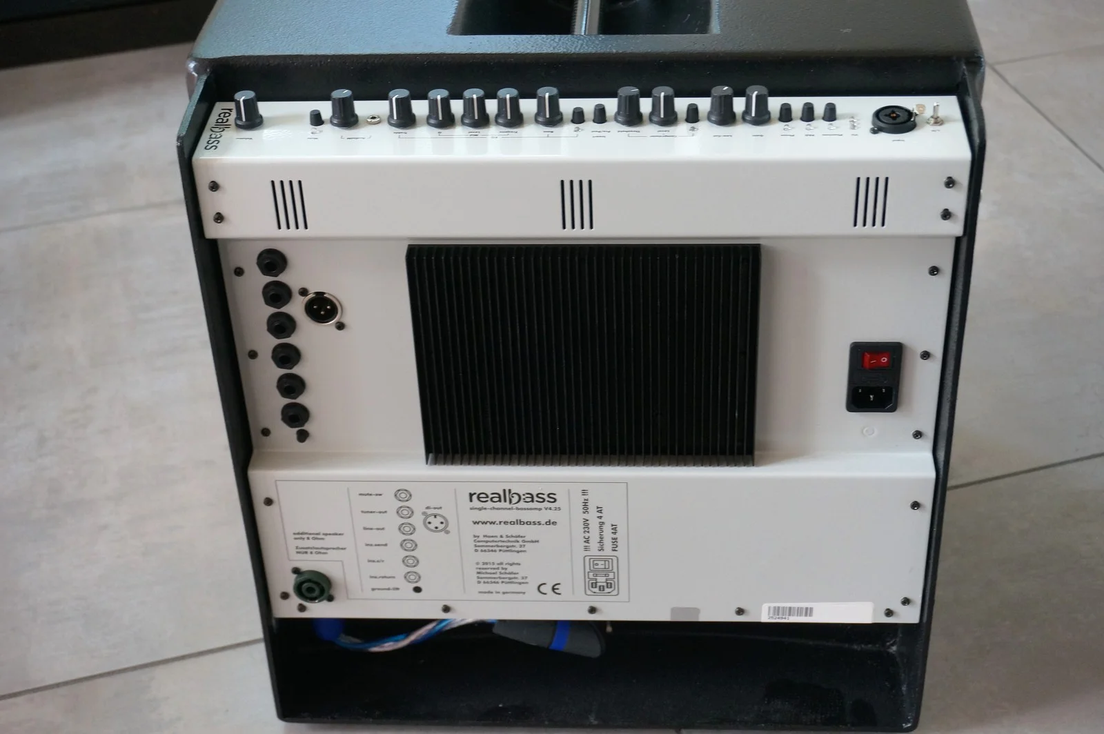 Hier besteht die seltene Möglichkeit, einen noch fast neuen Realbass Combo-Verstärker zu erwerben. Der Amp besitzt einige (fast) einmalige Features und zeichnet sich insbesondere durch sein ultraleichtes Carbon-Gehäuse aus. Obwohl die eigentliche Verstärkereinheit noch über ein vernünftiges Netzteil (und kein Schaltnetzteil) verfügt, wiegt das ganze nur ca. 12,5 KG. Und den Unterschied zu Schaltnetzteilen hört man meines Erachtens deutlich.