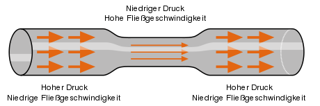 Bei gleichem Querschnitt nicht - du brauchst eine Verengung (Siehe Venturi) :