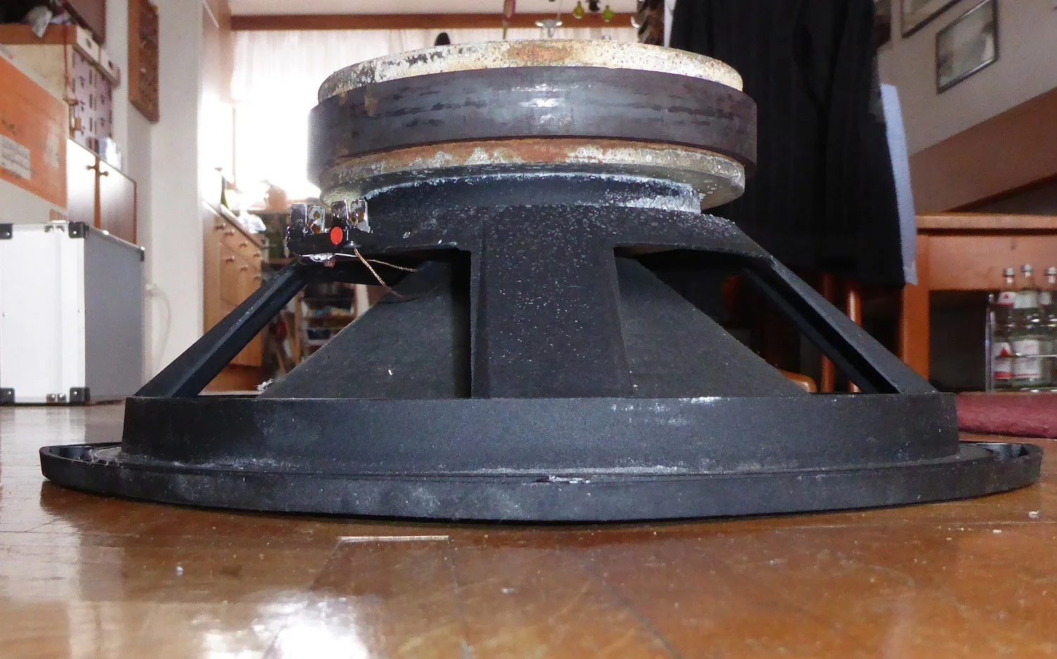 Nachdem ich jetzt doch wieder eine Bassbox brauchen werde, habe ich mir Gedanken gemacht, was ich mit dem kaputten 12" Lautsprecher aus der Trace Elliot 2x12er machen soll und ihn ausgebaut, um genauer zu sehen, wie sein Zustand ist. Aber seht selbst