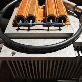Großzügig dimensioniertes Alublech zum Kühlen, Kabel, Buchse und Lötzinn, fertig ist der 200 Watt Power Soak.