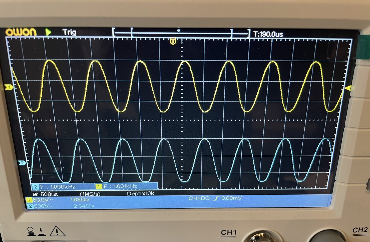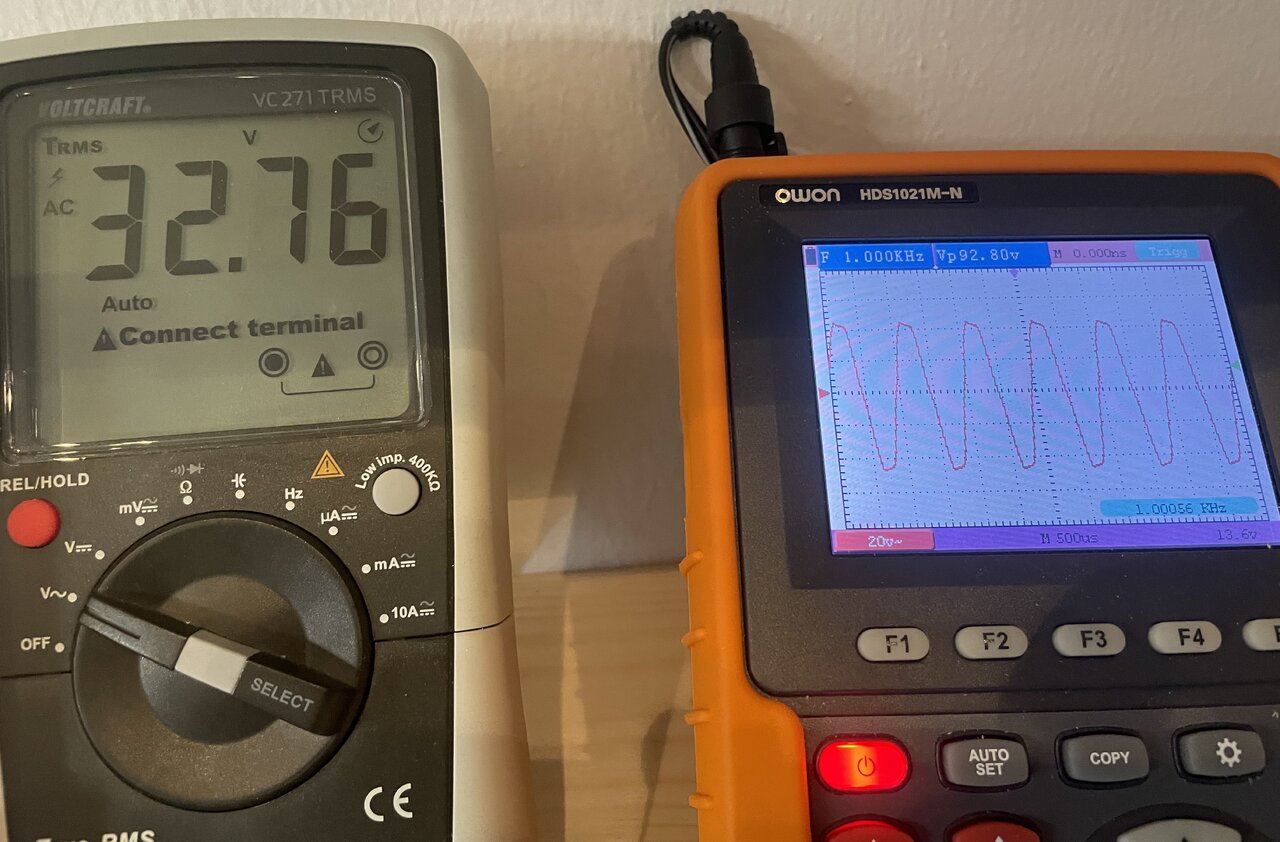 Noch ohne Gegenkopplung, da er geschwungen hat, ich hatte ja die Ausgänge des CF vertauscht. Muss ich zurück tauschen.